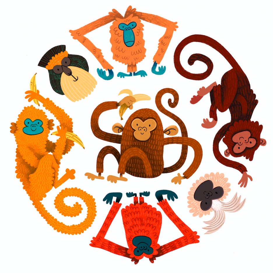 Prate rundt fatet består av 17 ulike design fra 4 ulike designere: Å leke sammen, lekeapparater, mat, verktøy, trafikk, båter, romskip, sykler, sauer, apekatter, tigre, kaniner, sommerfugler, fugler, fisk, mark og larver og bursdag.