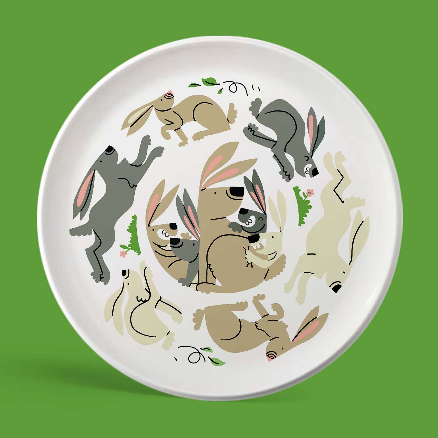Hva ser du her? Kanskje det er en hel familie med kaniner? Men de er forskjellige. Kan det være samme sort? Hva gjør de? Vet du hva kaniner liker å spise? Kjenner du noen som har kanin hjemme?
